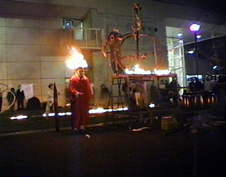 日本の場合、火を使ったり裸体をさらすパフォーマンス・アーティストはなかなか場所がない。が、とわたしは思った——大学にはある種の「自治」があるはずだから、キャンパスでそういうパフォーマンスを演ってもらうのはどうか、と。このアイデアは、アーティストにとっても、また学生にとっても非常に刺激的で、アーティストは、外国では自由に演れたが国内ではやりにくいことができるというので喜んだ。学生は準備に参加し、助演者になる者もいた。映像学科の学生なので、ビデオ撮影の格好の被写体を得られたことに興奮しもした。しかし、こうした